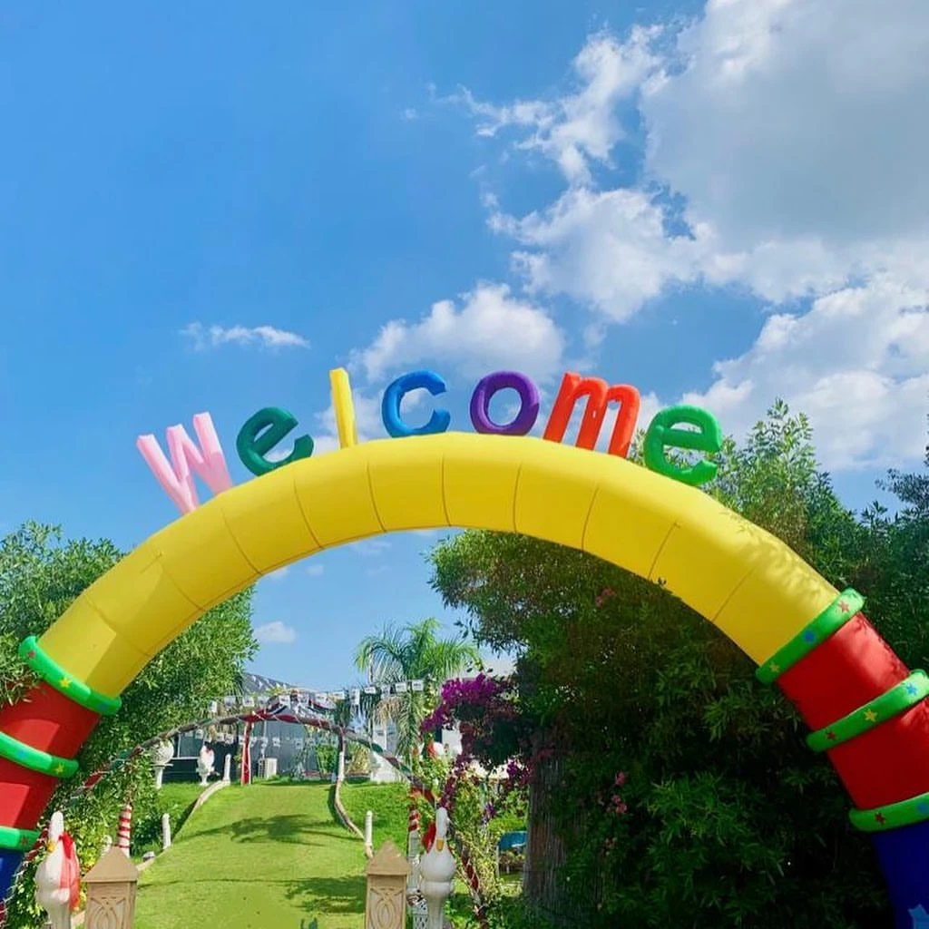 The beauty of the property's lush landscaping and natural greenery. But that's not all Shamsa chalet for rent in UAE goes above and beyond by providing complimentary access to  fun and adventure with  inflatable soap football courts, a sponge bomb slide, an inflatable pool and slide, and a Spiderman maze. These additions ensure that your stay at Shamsa is not just comfortable but filled with exciting activities for everyone to enjoy especially the little ones.
